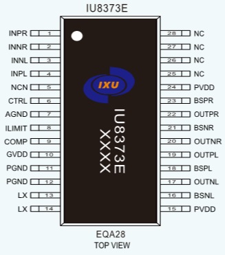IU8373E提供了纖小的的EQA28封裝形式供客戶選擇,其額定的工作溫度范圍為-40℃至85℃。