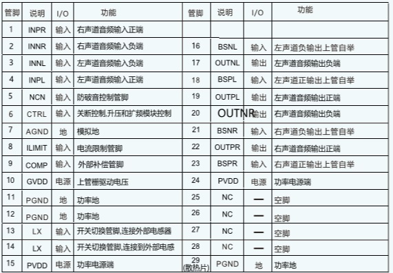 內(nèi)置升壓的30W立體聲D類音頻功放 |