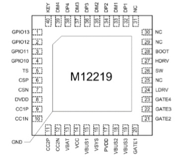 產(chǎn)品名稱: M12219(支持PD3.0等協(xié)議22.5W雙向快充單節(jié)移動電源IC)