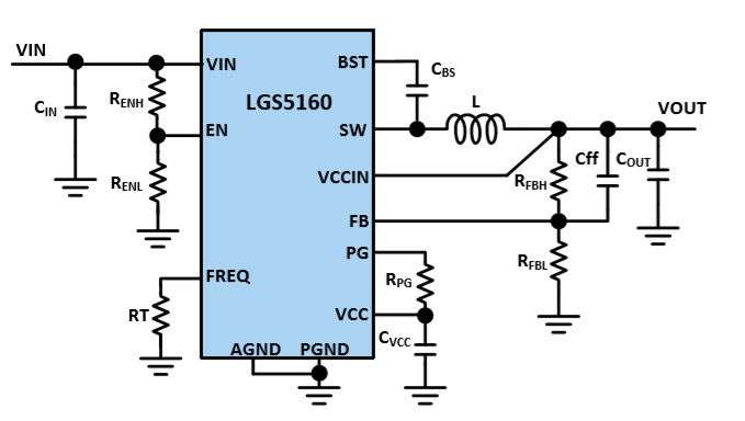 LGS5160具有低阻值130mΩ高側(cè)和95mΩ低側(cè)功率管, 可提供至少2.5A的輸出電流能力,具有出色的負(fù)載和線路瞬態(tài)響應(yīng)。