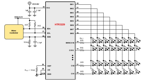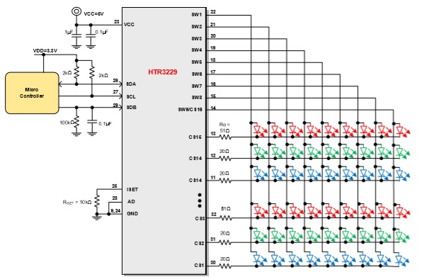 當(dāng)前位置:首頁(yè)->產(chǎn)品展示->RGB LED呼吸趣味燈驅(qū)動(dòng)IC->IS31FL3729/HTR3229(支持16x8或者15x9矩陣、點(diǎn)陣、陣列LED驅(qū)動(dòng)器IC)