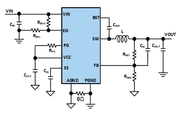 恒定導(dǎo)通時(shí)間(COT)控制模式能提供非?斓乃矐B(tài)響應(yīng)和簡單的回路設(shè)計(jì),以及非常優(yōu)秀的輸出調(diào)整率。附加功能包括:可調(diào)節(jié)軟啟動時(shí)間,電源正常標(biāo)志,熱關(guān)機(jī),井且集成了輸出短路保護(hù),在FB電壓較低時(shí)提供HICCUP模式以避免短路時(shí)過熱。