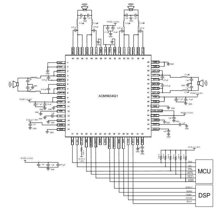 ACM9634是一款支持負載檢測的4*75W、4通道數(shù)字輸入車載D類音頻功率放大器。支持40V的load dump.在2.1MHz的開關(guān)頻率下可支持小尺寸輸出電感,節(jié)省PCB面積,同時也簡化AM Radio的抗干擾設(shè)計。ACM9634支持標(biāo)準(zhǔn)I2S或者TDM16的接口,可以在一組I2S(TDM)總線上支持16個喇叭發(fā)聲。內(nèi)部集成供電電壓檢測ADC,多路溫度檢測傳感器,能實時檢測電壓和溫度變化上報給主平臺優(yōu)化故障管理和熱管理。采用業(yè)界最全面的低EMI技術(shù),讓車載音響系統(tǒng)EMI設(shè)計變的簡單高效。