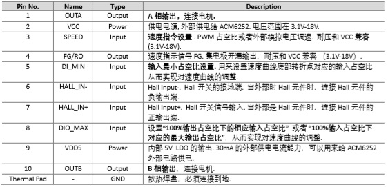 ACM6252可以在外部供電3.1~18V 范圍電壓下驅(qū)動(dòng)一個(gè)單相直流無(wú)刷電機(jī), 峰值電流驅(qū)動(dòng)能力可以達(dá)到1.2A.