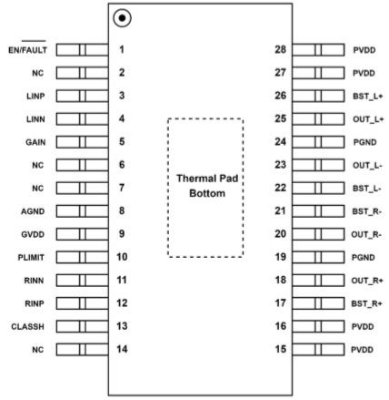 42W, 1% THD+N, 14.5V, 2Ω, PBTL |