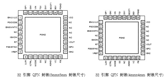 4x4mm 或 5x5mm QFN-32L 封裝