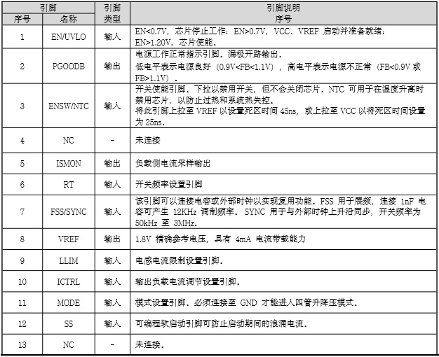 引腳配置和功能