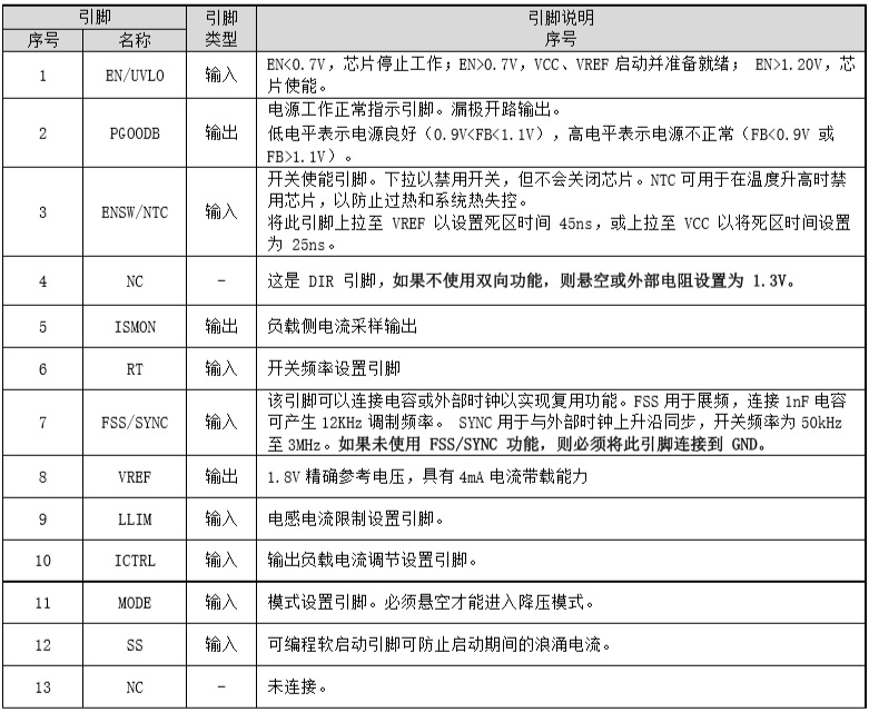 引腳配置和功能