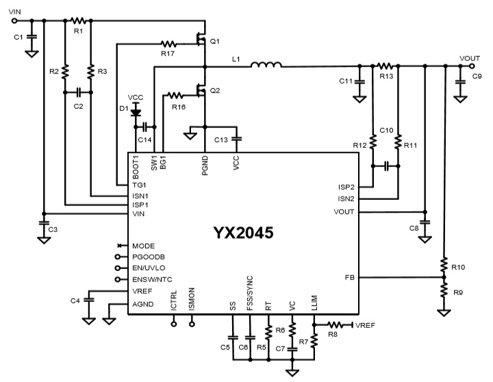 當(dāng)前位置:首頁(yè)->產(chǎn)品展示->電源管理IC->YX2045(4V-45V寬電壓輸入,30A大電流同步降壓芯片)