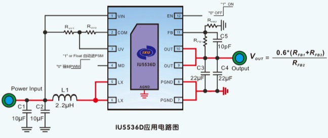 IU5536D還具有輸出過壓保護(hù)、輸出短路保護(hù)和熱關(guān)斷保護(hù); 封裝-DFN3X3_12L