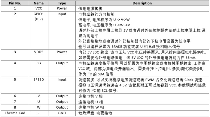 管腳定義以及管腳功能描述