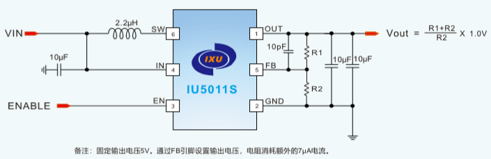 IU5011S是一 款高效同步升壓轉(zhuǎn)換器,特點(diǎn)有:具有升壓跟隨輸入電壓功能,最低1.0V啟動(dòng),低至2µA的超低靜態(tài)電流。最高能夠輸出5V/0.7A的電流。