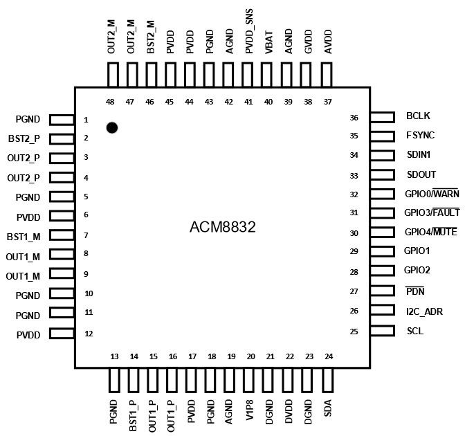 ACM8832一款高度集成、高效率、低EMI的雙通道數字輸入D類音頻功放。