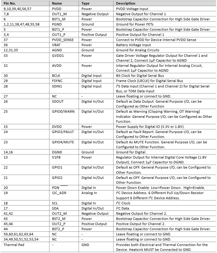 ACM8852設(shè)備集成了各種保護功能,以保護設(shè)備、揚聲器和系統(tǒng)免受故障事件的影響,如短路保護、過熱保護、揚聲器直流保護、電池負載轉(zhuǎn)儲保護、過壓/欠壓保護、時鐘錯誤保護。